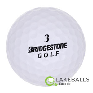 Bridgestone-Golfbälle in mittlerer Qualität. Sie weisen leichte Verfärbungen und Gebrauchsspuren auf.